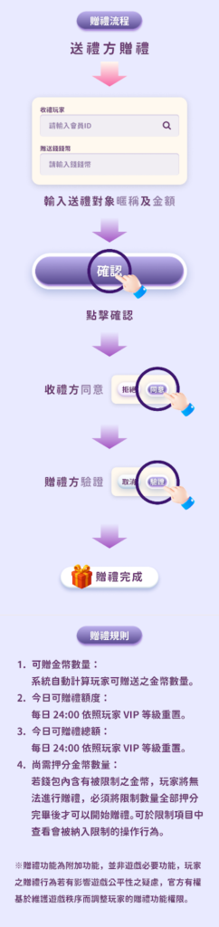 - 遊戲內移轉: 透過遊戲內的「轉點」系統,將幣轉給幣商指定帳號